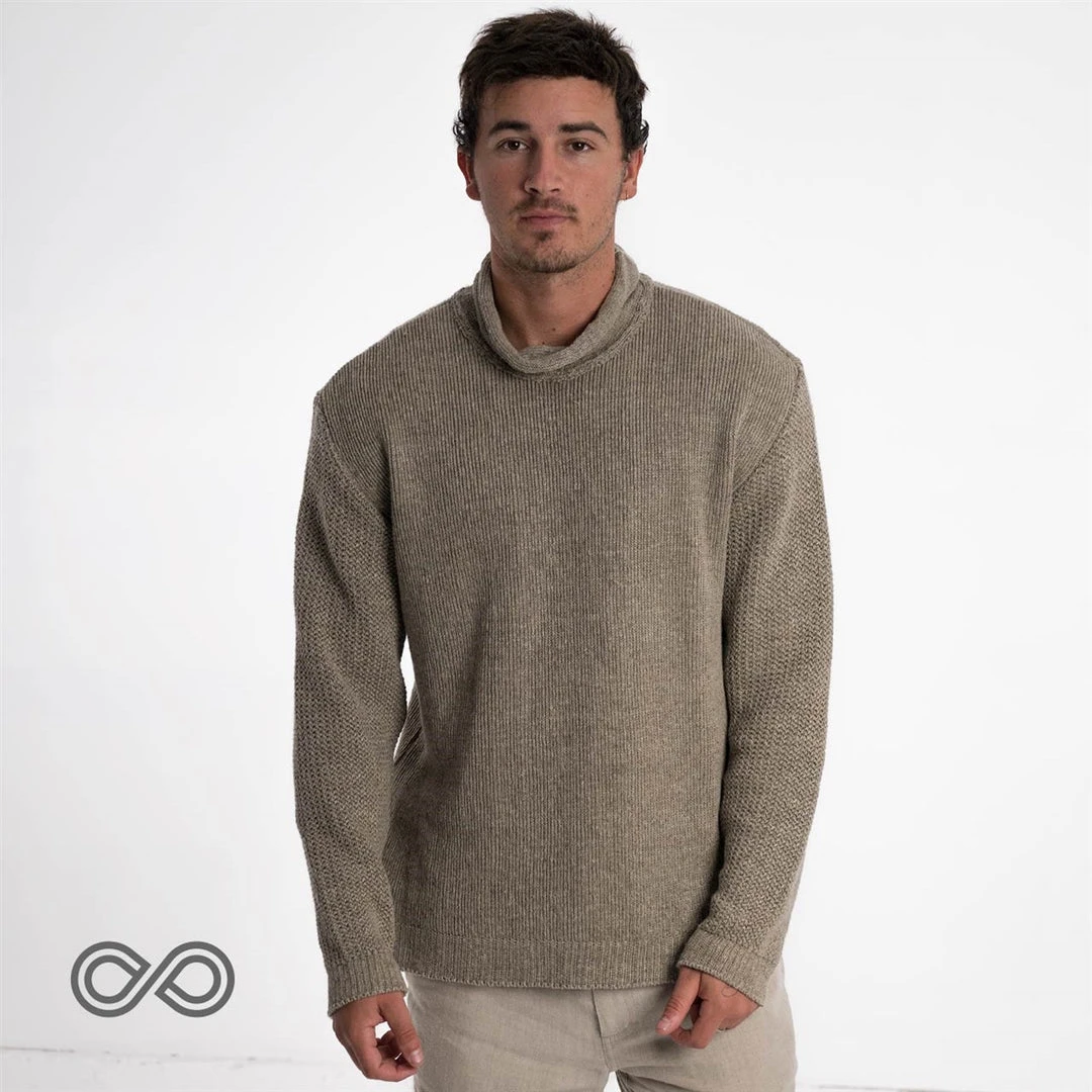 Rare & unique heritage 100% organic linen sweater. Pronounced “Broosh” (a beautiful city in Belgium). Timeless elegant character piece. Cozy. Breathable. Unisex S – 2XL. Untreated, substantial, raw, truly natural & breathable.