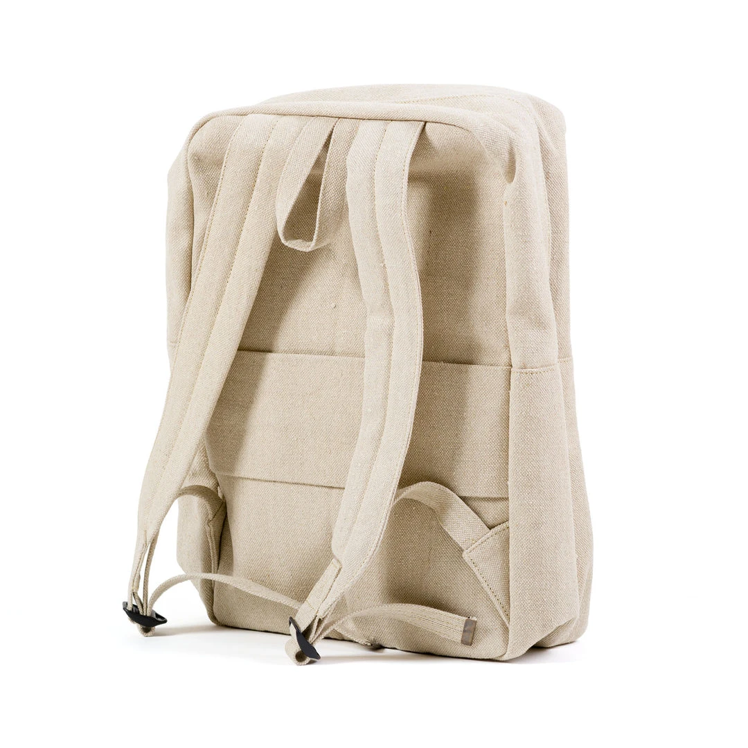 Our toughest organic hemp backpack ever! Made with our 100% stiff hemp canvas & lined with hemp fabric & trimmed with hemp edging tape This hemp backpack will be your indispensable companion on the trips short & long where your best life memories are created. Super roomy, durable & timeless. YKK zippers throughout. Luggage strap in the back, so you can conveniently take it as a personal bag through the handle of your roller carry-on trolley. Features a roomy zippered front pocket, padded straps, and an inside pocket for wallet, cash, keys, and/or your travel documents.