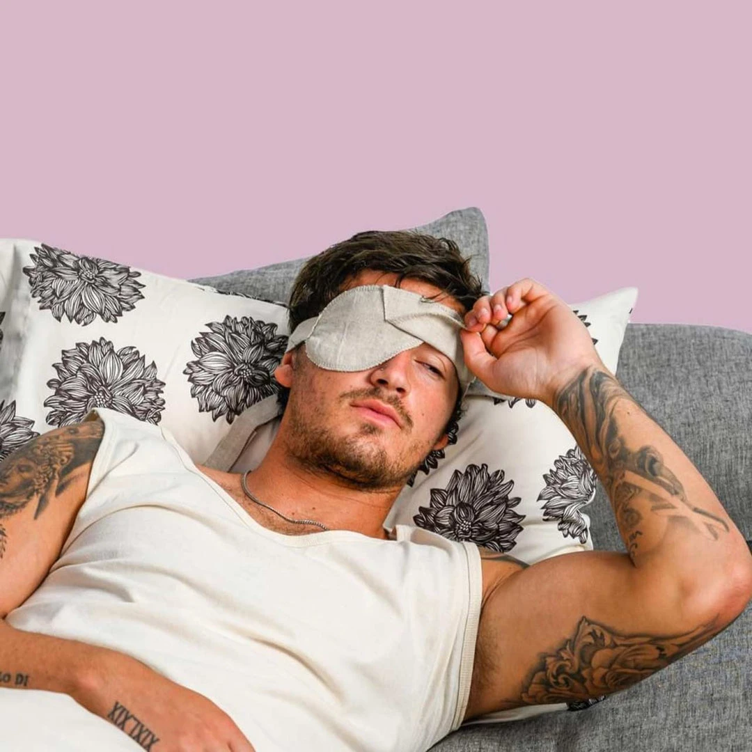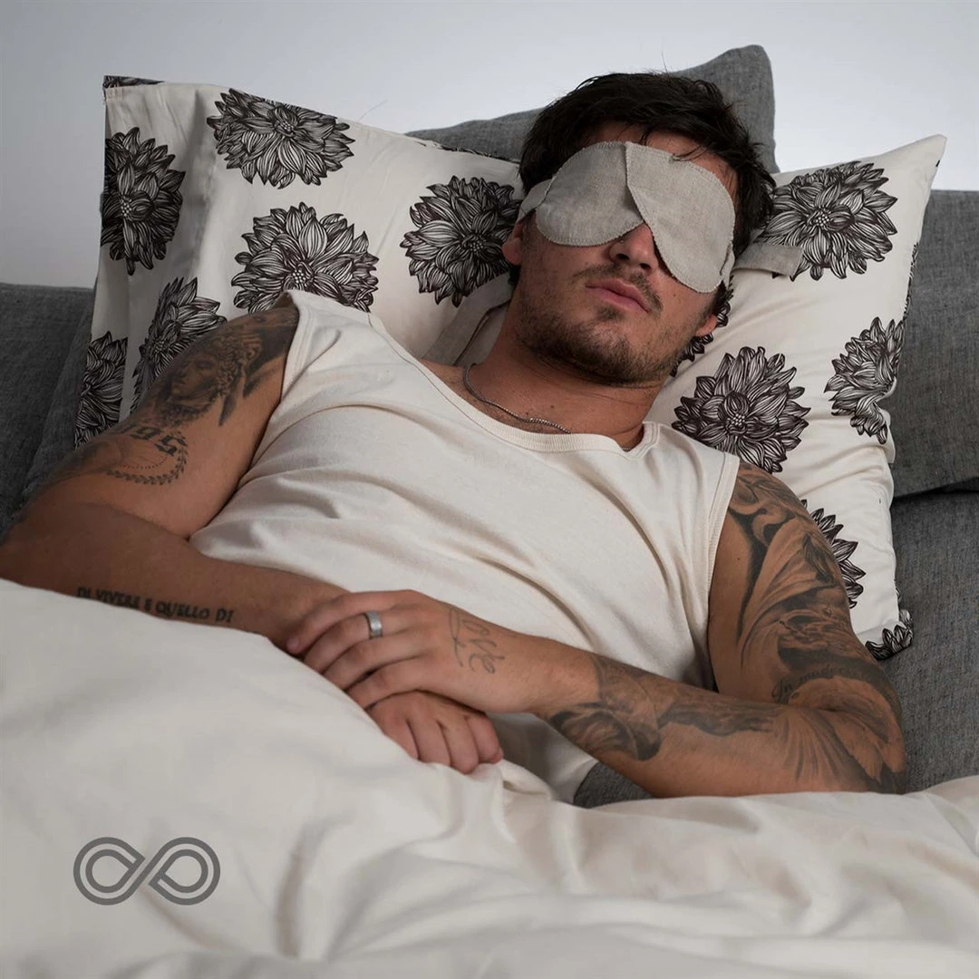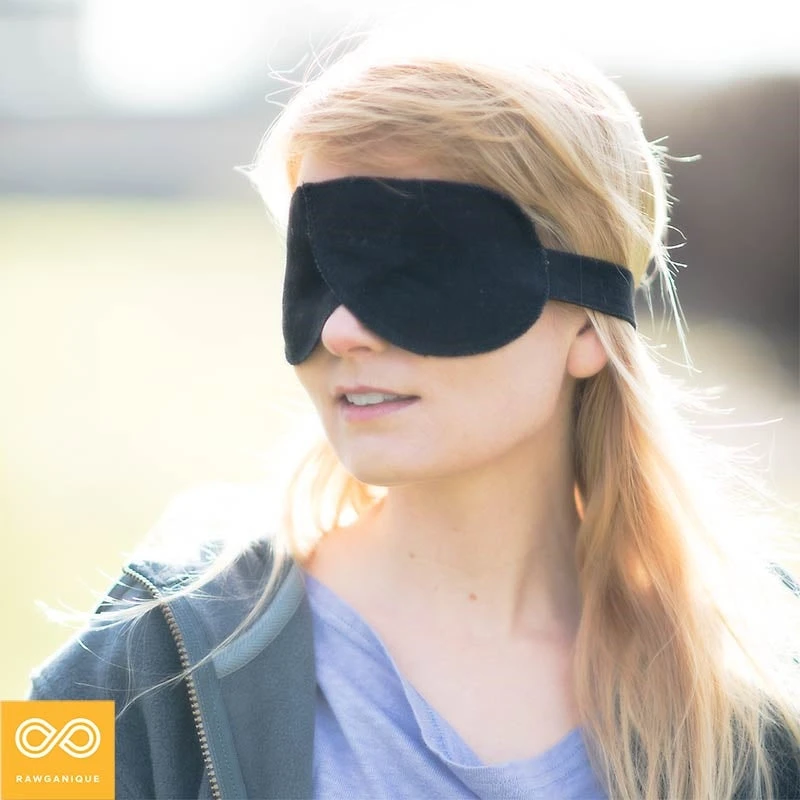 Our 100% organic linen eye mask / eye shade adapts to most facial features. Velcro-free. Elastic-free. Perfect for sleep, travel, meditation. Black will block out most light in most situations. We make natural and ivory organic linen sleep mask for customers who have MCS and need the eyeshade to be dye-free (even though we only use non-toxic biodegradable dyes). Natural and ivory won’t block out as much light. Handwash or submerge in boiling water for 30 seconds to clean, disinfect and sanitize.
