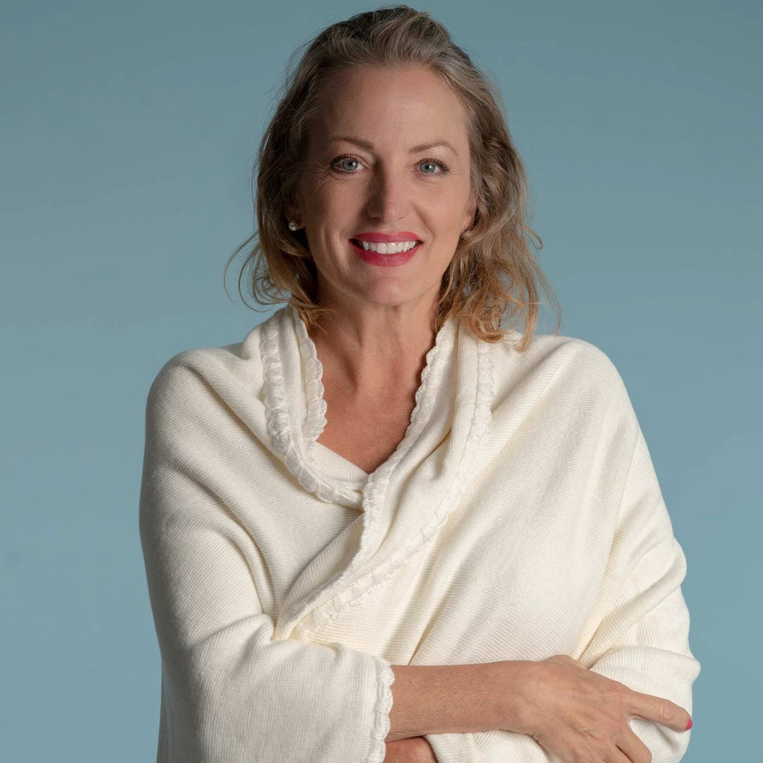 Heritage. Beautifully breathable and insulating. Rare & special organic linen ribbed knit with scalloped edges. Ivory. Throw, Twin, Full, Queen, King.