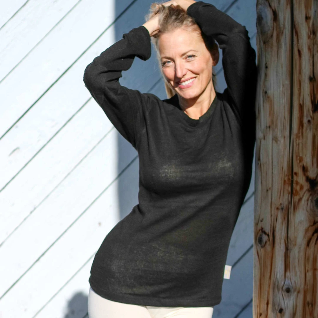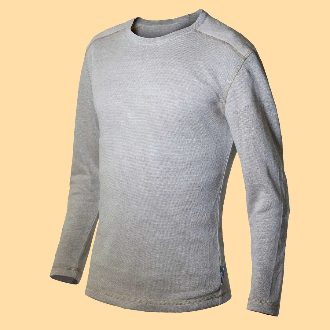 Unique long-sleeve 100% organic hemp T-shirt – we grow, knit and sew each cotton-free, zero-waste hemp T-shirt for true purity and environmental sustainability. Natural (unbleached & undyed). S – XXL.