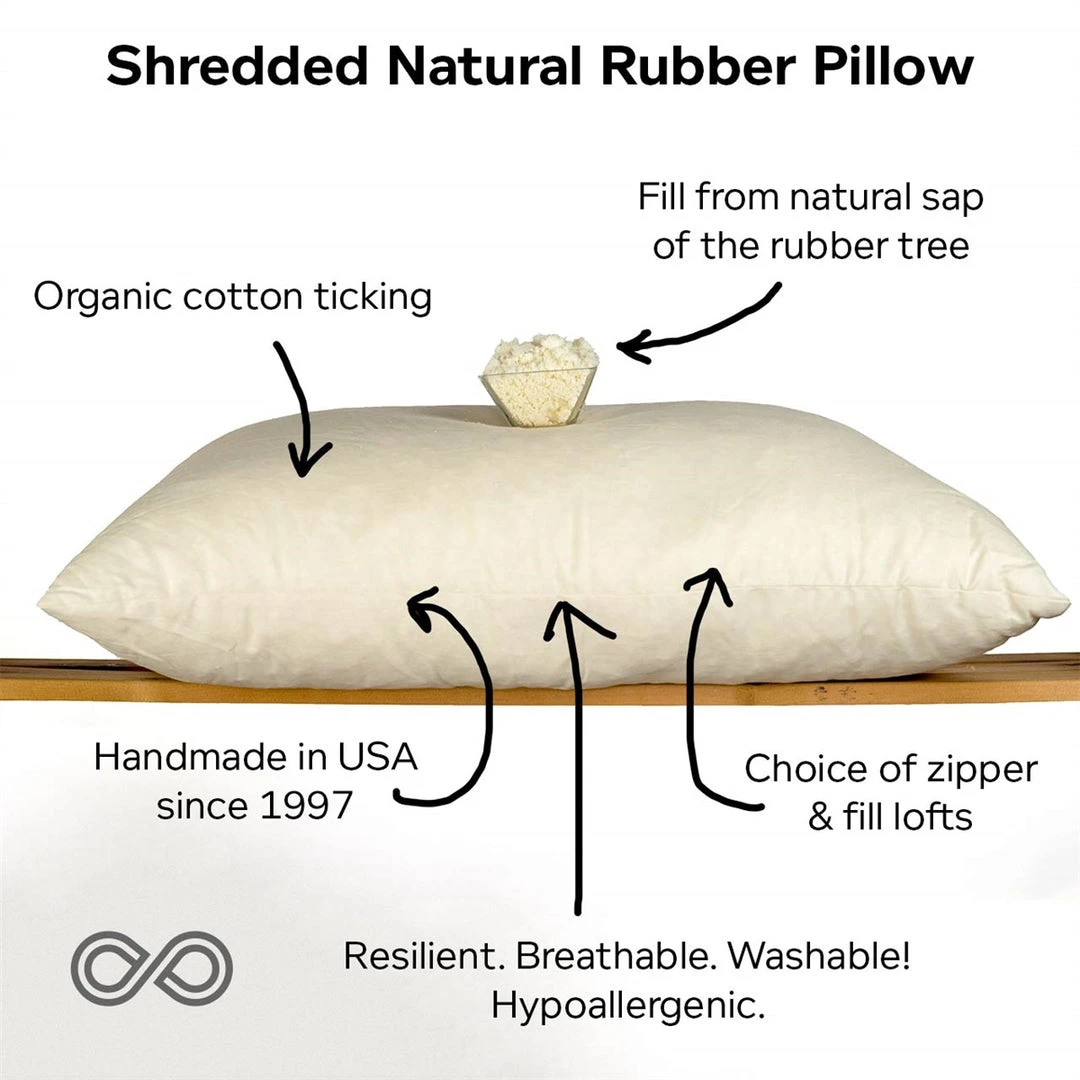Style: Organic shredded natural rubber latex pillow, made in USAÂ