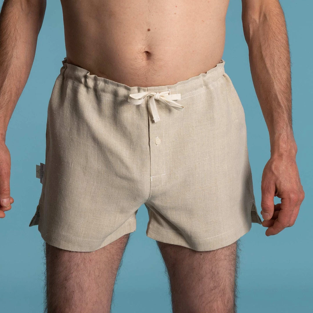 Our Elastic-free French Linen Boxers are heritage through and through. Because many of our customers cannot tolerate elastic & synthetics for health reasons, we created these Organic Linen Boxers 20 years ago and they have since become a classic among our customers. We went back to heritage linen boxers of 200 years ago before elastics were created and learned how it was done. Many customers who suffer from skin allergies, rashes, psoriasis, and eczema have reported relief and disappearance of symptoms when they start wearing organic linen and hemp underwear. Especially in winter, when indoor dry heat causes temperature buildup, our customers report that their skin conditions are much improved by wearing organic linen underwear.