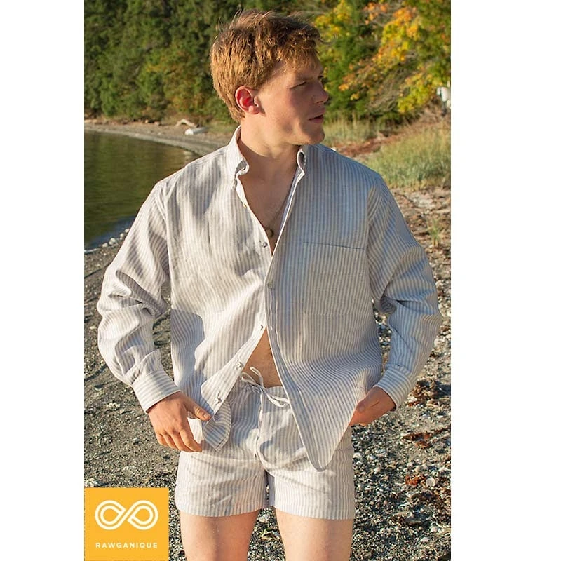 100% organic linen boxer shorts with drawstrings. Plastic-free 100% natural carved tagua nut buttons from tagua nut trees. Organic cotton threads (since 2020). Doubled-up crotch for durability. Side slits for comfort. Super breathable and wicking luxury organic underwear. XS – 3XL.