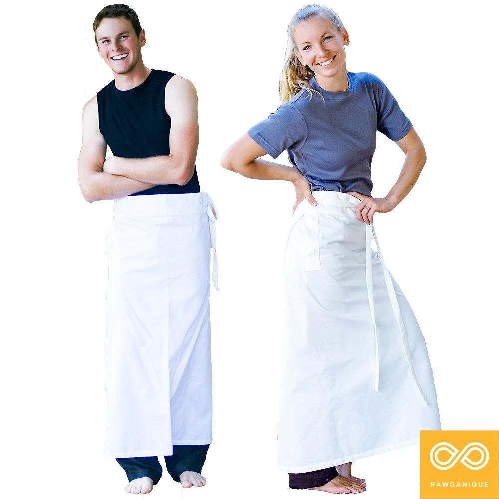 Our Organic Cotton, Linen, & Hemp Bistro Aprons offer full coverage from the waist down, in the gourmet tradition. Through-pockets on each side give you access to your pants’ pockets.