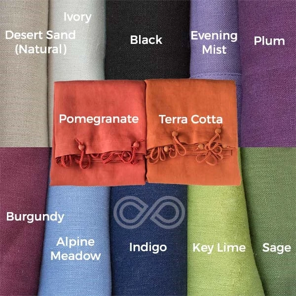 PVC-free and chemical-free. 1) Use with or without a liner 2) Can use our 100% natural wax to waterproof the curtain. Wax the water side plus 10″ on the bottom of the other side or wax both sides. 3) It’s important to have good ventilation in the bathroom (if you don’t, just put a small fan there to circulate the air) 4) Watch out for soap and shampoo scum and wash the curtain as needed 5) Waxed curtains are no longer machine washable. Reapply the wx every year or two or as needed. Wipe with damp cloth to clean. Use our Castile soap canvas cleaner for a deeper clean. 24″ x 72″ mini stall size. We started making the first and only 100% European hemp shower curtain in 1997. It’s still a rare and unique thing today. Sweatshop-free. Chemical-free. 4 versatile low-impact biodegradable fiber-reactive dyed colors. Made in-house at the Rawganique Atelier in Europe for true purity.