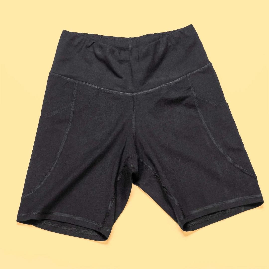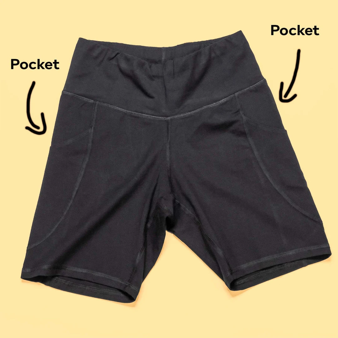 Style: Organic cotton blockout legging shorts with pockets