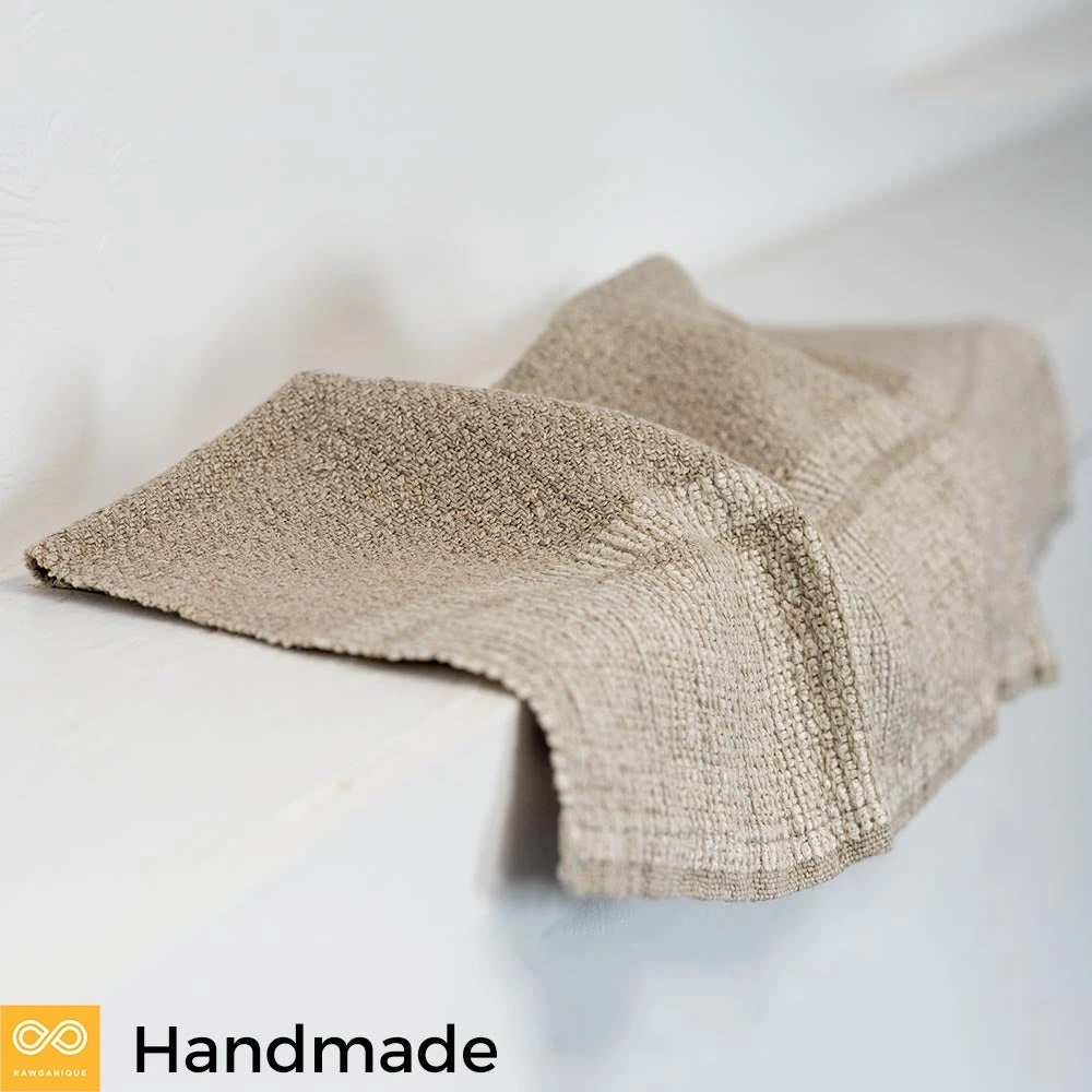 Our non-toxic organic linen placemat gets its cozy volume from the method of triple washing, where we weave it to be 2-3 times the size that it will settle to. After the shrinkage, there’s a lot of volume and thickness to this special organic linen place mat.