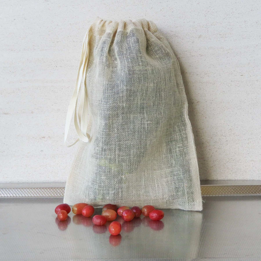 Go shopping with confidence in your contribution to reduce plastic. Also perfect for storing produce in the produce drawer in the refrigerator. Pulley drawstrings made of 100% organic cotton; even the sewing thread is organic cotton. Bag made of 4.8oz 100% organic European hemp cheesecloth fabric.