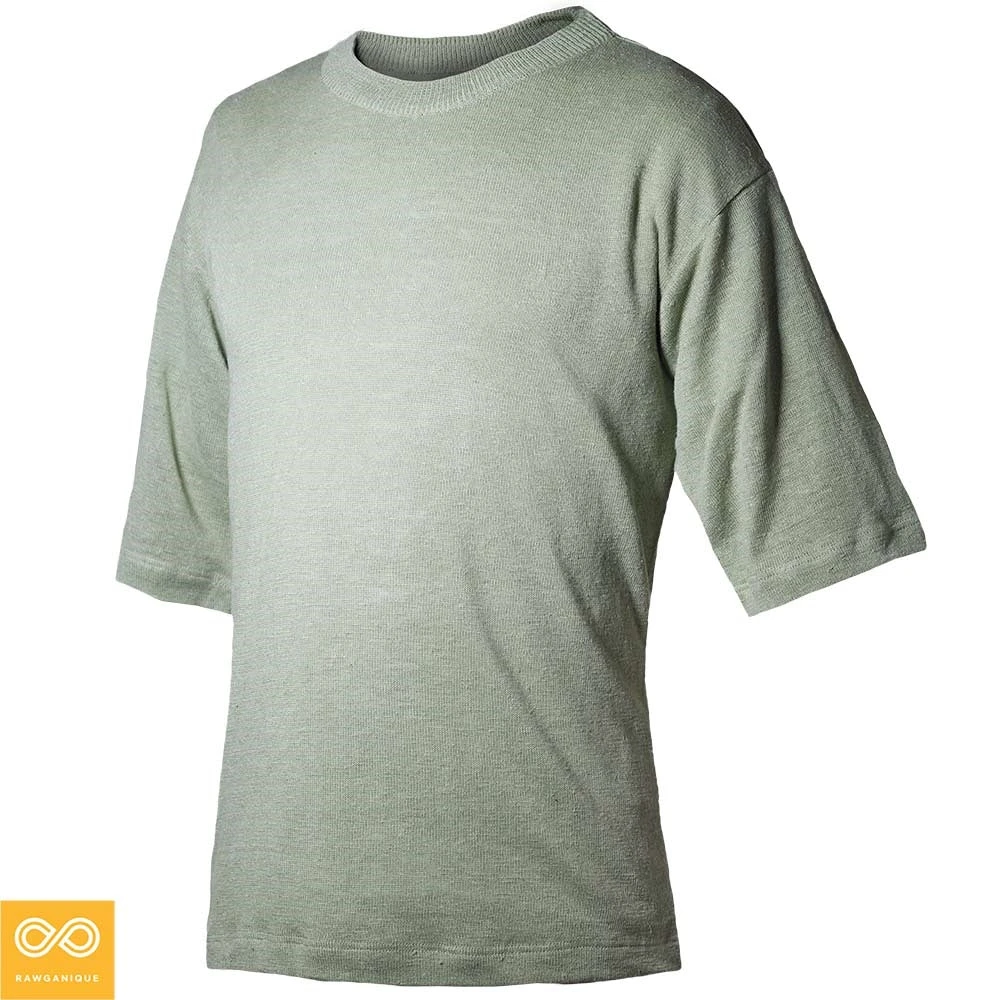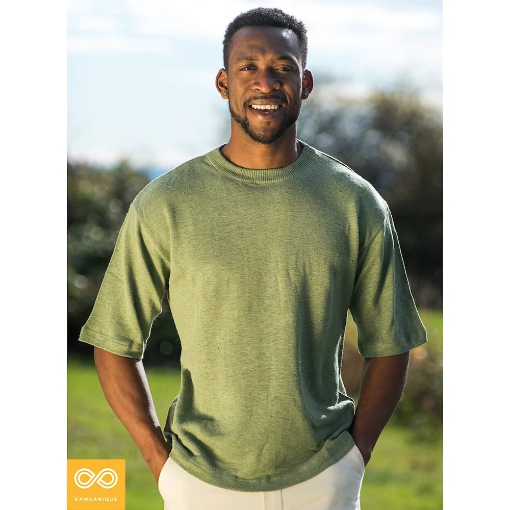 A Rawganique.com exclusive: 100% organic Irish linen knit short-sleeve t-shirt. 100% elastic-free & lycra-free. No spandex. 100% cotton-free. 100% vegan.
