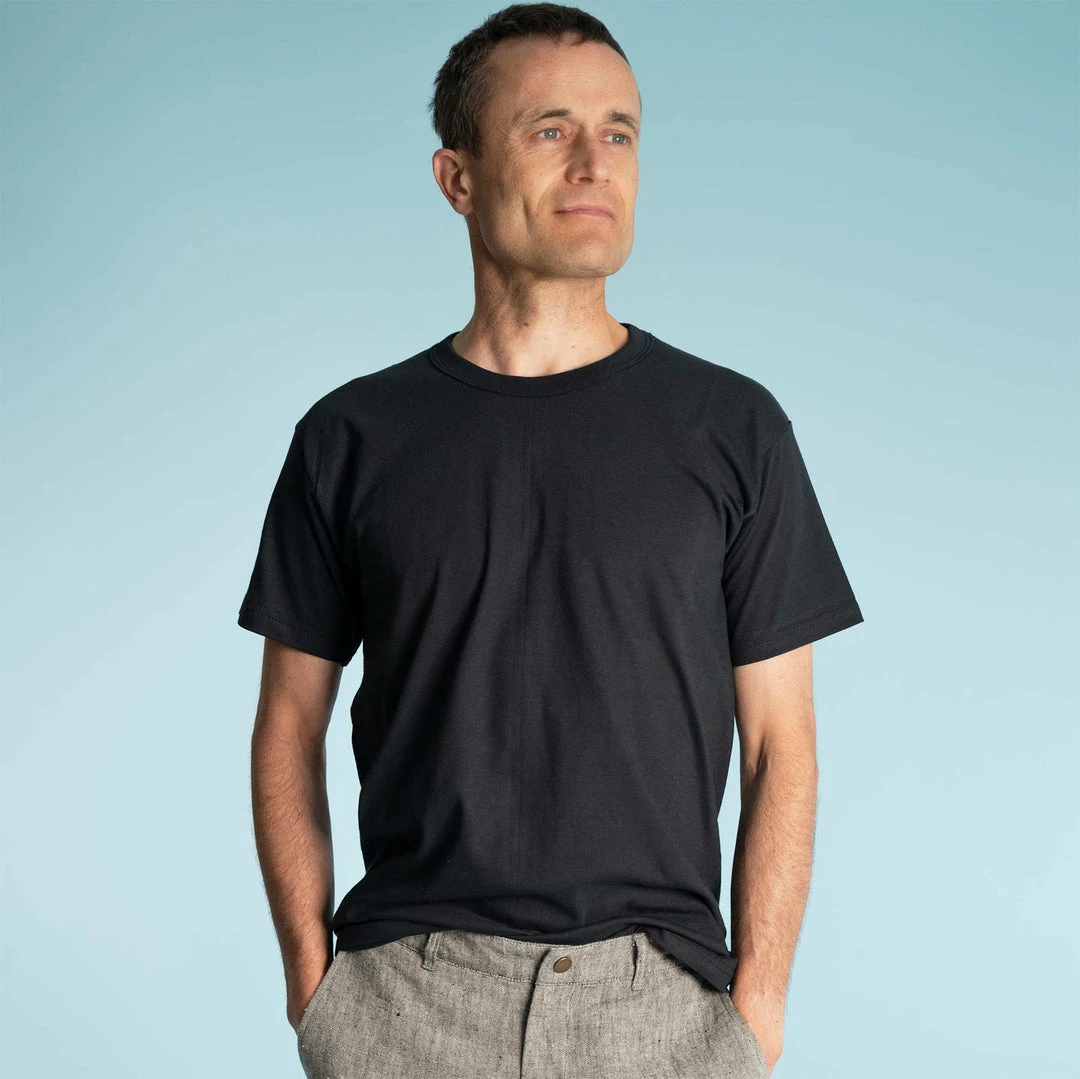Style: Classic crew-neck organic cotton T-shirt (no elastic, no elastane, no polyester, no polyamide)