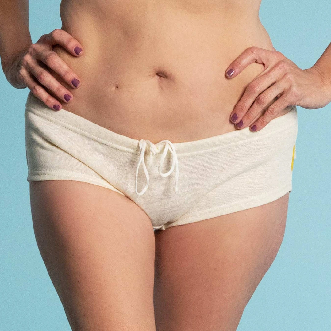 Please note: the color varies from batch to batch, depending on harvest conditions. Some batches are more gray, some batches are more “blond”. Elastic-free, latex-free 100% organically grown hemp knit boy short panty. Organic cotton threads. Super breathable for best moisture control. No elastic. No lycra. No spandex. Unbleached & undyed.