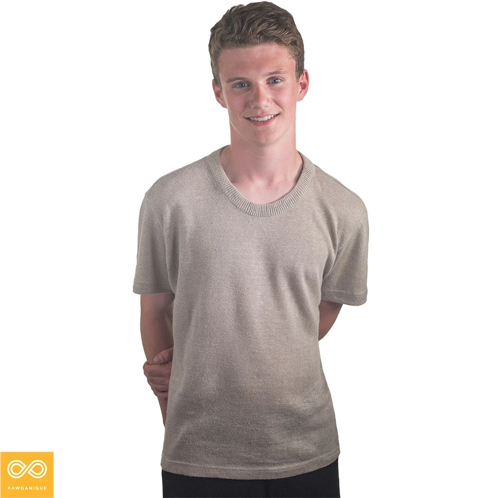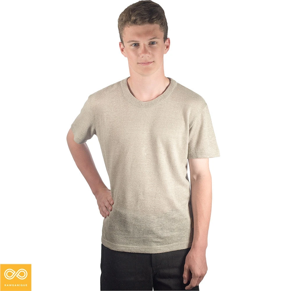 Linen connoisseurs the world over know us as the place to find heritage linen products made like they were crafted through the centuries in the Old World. Our Inverness Organic Irish Linen T-shirt is no exception. This beautiful soft and breathable 100% organic flax linen T-shirt is made in-house at the Rawganique Atelier in Europe from start to finish: we comb the flax linen strands then knit the resulting long-strand fibers into a silk-like 100% flax linen jersey knit. We then hand-craft the heritage knit linen fabric into a handsome T-shirt that drape perfect over the contours of your body. The organic linen T-shirt features our new slimmer, more fitted T-shirt and looks great on men and women.