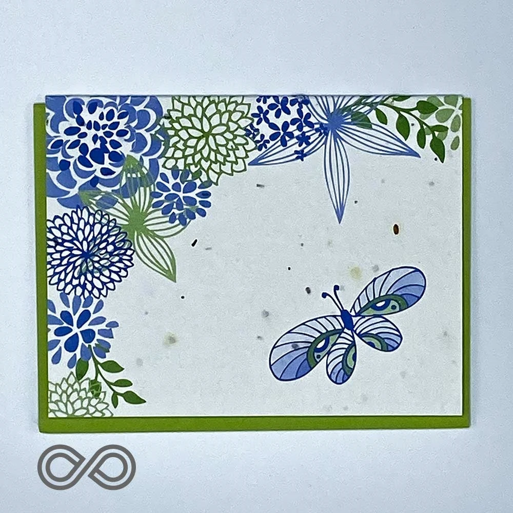 Handmade in the USA. 100% Recycled ingredients – using no chemicals, dyes or additives in making this sustainable greeting card. With each card comes a matching color envelope.