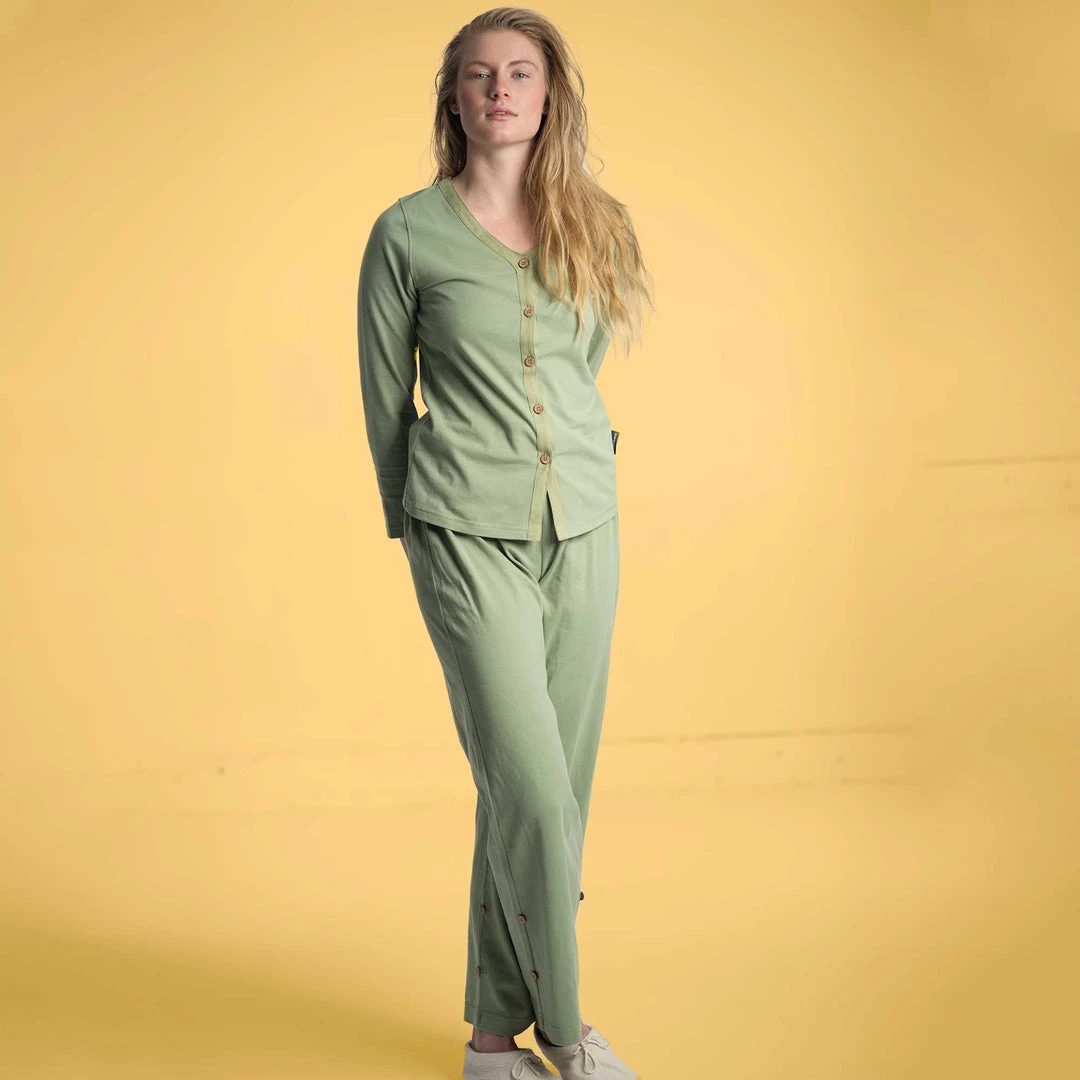 Cozy & pure 100% organic Prima cotton pajamas sleepwear loungewear set for sleep & at-home lounging. The tops are dressy enough for work and Zoom. Great for yoga and meditation, too. Elastic-free. Plastic-free natural carved 100% tagua nut or coconut buttons. Scroll down for sizing.